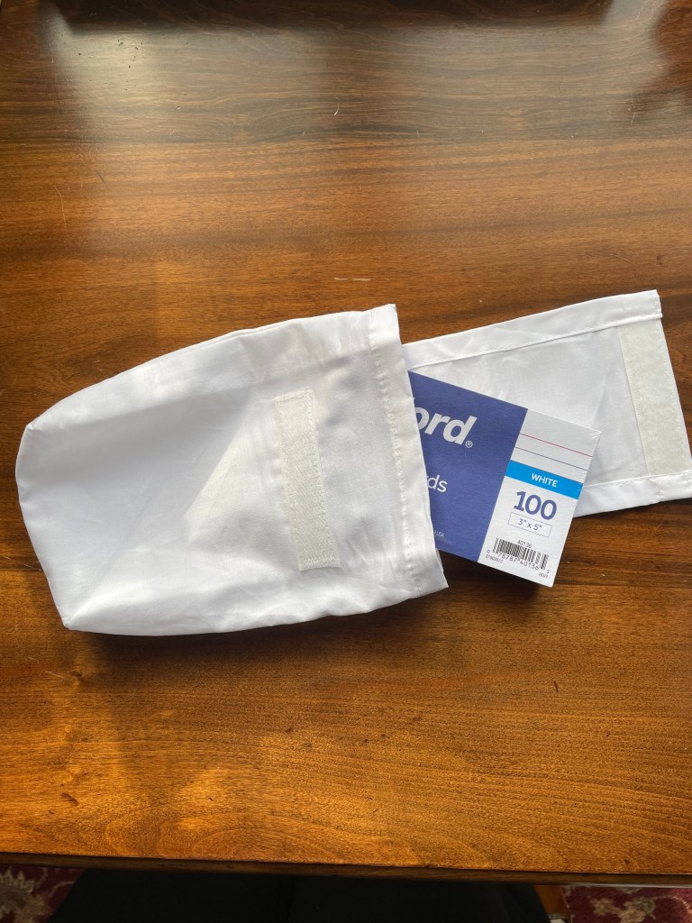 A set of pillow cases from Target were folded up tight in a little cotton pocket. Every pocket needs a poem, so with April being National Poetry Month, I will write my month’s poems on index cards and store them in this new little pouch.
